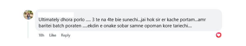 এখানেই থামেননি ওই শিক্ষক। ভিডিও কলে ছাত্রীকে কুপ্রস্তাব দেওয়ার পাশাপাশি স্ত্রীর সম্পর্কে তীব্র আপত্তিকর মন্তব্যও করেন তিনি। বিদ্যুতের গতিতে সোশাল মিডিয়ায় ছেয়ে গিয়েছে ওই শিক্ষকের অডিও। কমেন্ট বক্সে নিন্দার ঝড় বইছে। শাস্তির দাবি জানানোর পাশাপাশি অনেকেই দাবি করেছেন, ওই শিক্ষক আগেও এধরনের আচরণ করেছেন। প্রতিবাদ করলে নানারকম হুমকিও দিয়েছেন।