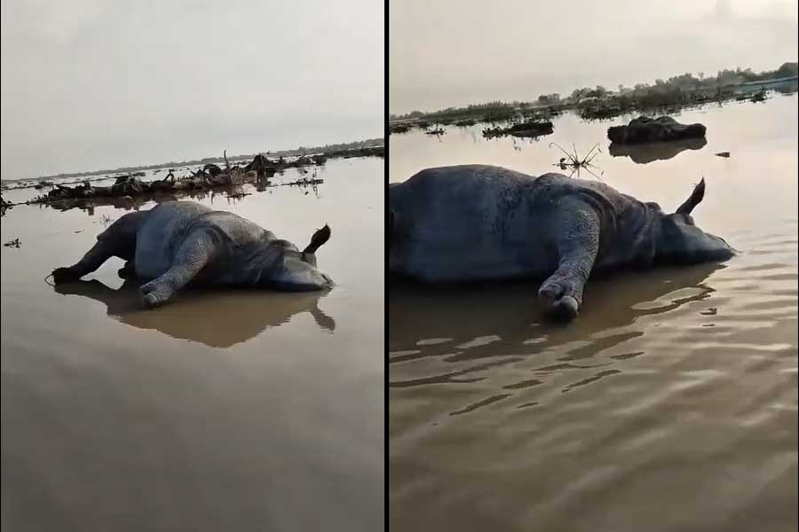 যেখানে একটি গণ্ডারকে মৃত অবস্থায় পড়ে থাকতে দেখা যাচ্ছে। যদিও ভাইরাল হওয়া ভিডিওটির সত্যতা যাচাই করেনি সংবাদ প্রতিদিন ডিজিটাল। কিন্তু ভাইরাল ভিডিওতে এক ব্যক্তিকে বলতে শোনা যাচ্ছে, ”ভারত থেকে বন্যার সঙ্গে একটি গণ্ডার ভেসে এসেছে কুড়িগ্রাম জেলায়।” তবে সেটি কীভাবে ভেসে এসেছে, তা জানেন না বলেই দাবি করছেন ওই ব্যক্তি। এমনকী গণ্ডারটি উত্তরের কোনও উদ্যান থেকে ভেসে গিয়েছে কি না তাও স্পষ্ট নয়। তবে একটি সূত্রের দাবি, বাংলাদেশে উদ্ধার হওয়া মৃত গণ্ডারটি জলদাপাড়ার। সম্ভবত শীলতোর্সা নদী হয়েই গণ্ডারটি ভেসে যেতে পারে।