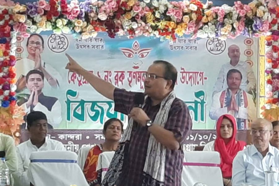 কাটোয়ায় দলের বিজয়া সম্মিলনীতে কুণাল ঘোষ, শনিবার দুপুরে। ছবি: জয়ন্ত দাস।
