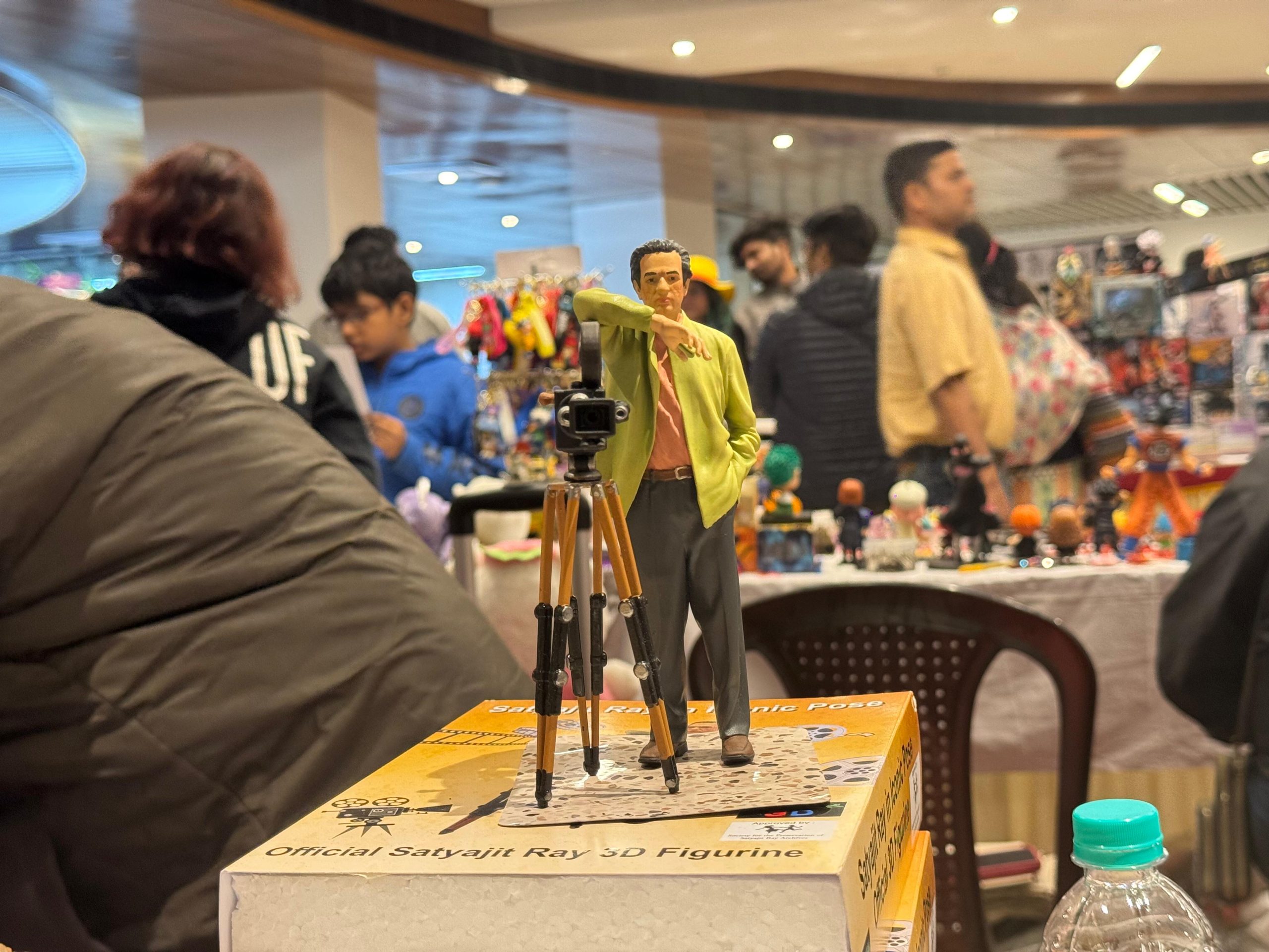 কথা হচ্ছিল দীপক সিংয়ের সঙ্গে। সপরিবারে এই কার্নিভ্যালে থাকেন তাঁরা। হাতে তৈরি অরণ্যদেব থেকে জোকারের পুতুল, স্টিকার, পোস্টারের পসরা সাজান। কিন্তু এবার তাঁর স্টলের সেরা চমক বাঙালির রক্তমাংসের এক সুপারহিরো সত্যজিৎ রায়। ক্যামেরা নিয়ে দাঁড়িয়ে থাকা রায়বাবুর এই মূর্তিটি তৈরি হয়েছে রায় পরিবারের অনুমতি নিয়ে, জানালেন তিনি। মূল্য? প্রায় নিখুঁত মূর্তিটির দাম এখান থেকে কিনলে ৩ হাজার ৭০০ টাকা। কার্নিভ্যালের পর কিনতে গেলে আরও বেশি গাঁটের কড়ি গুনতে হবে। কিন্তু এত দাম! সাধারণ ক্রেতারা কী করবে? দীপকবাবু হাসলেন, ”তাঁদের জন্যও আছে। সকলেরই সাধ্যের কথা মাথায় রেখেছি আমরা। তাই দশ টাকা থেকে দশ হাজার টাকা, পকেট বুঝেই কেনাকাটি করা যাবে। আমরা চাই কেউ যেন দুঃখিত মুখে ফিরে না যান।”