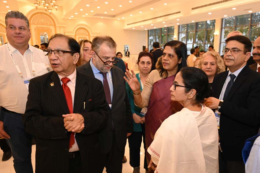 এবার পার্টনার দেশ বেড়ে হয়েছে ২০। বঙ্গে লগ্নির লক্ষে অংশ নিচ্ছে মোট ৪০টি দেশ। তাঁদের মধ্যে রয়েছেন ২৫ জন রাষ্ট্রদূত। বুধবার নিউটাউনে আন্তর্জাতিক কনভেনশন সেন্টারে বাণিজ্য সম্মেলনের উদ্বোধনের আগে মুখ্যমন্ত্রীর দেওয়া এই তথ্যই বুঝিয়ে দিল বড় লগ্নির কতটা সম্ভাবনা সৃষ্টি হয়েছে এবার। কোভিড পরবর্তী সময়ের সমস্যা কাটিয়ে বিদেশি লগ্নিকারীদের গন্তব্য হয়ে উঠেছে এই রাজ্য। দৃশ্যতই তৃপ্ত মুখ্যমন্ত্রী। এক বছর পর বিধানসভা নির্বাচন। এই সম্মেলনের সাফল্যই হবে মমতার নির্বাচনী হাতিয়ার। তিনি বলেছেন, “এটা খুব ইউনিক যে এত দেশ অংশ নিতে আসছে। আমি মানুষের চোখ দিয়ে সব কিছু দেখি। সম্মেলন কত বড় হবে মানুষ বলবে। সবাইকে বাংলায় স্বাগত।” অক্টোবরের মুখ্যমন্ত্রীর আমন্ত্রণ গ্রহণ করে বাণিজ্য সম্মেলনে আসার ঘোষণা করেছিলেন ভুটানের প্রধানমন্ত্রী সেরিন টবগে। সূত্রের খবর, দিল্লির ‘ক্লিয়ারেন্স’মঙ্গলবার অবধি আসেনি। স্বভাবতই মুখ্যমন্ত্রী খুশি নন। যদিও তিনি প্রকাশ্যে এ নিয়ে কিছু বলতে চাননি। এক প্রশ্নের উত্তরে বলেন, “উনি নিজেই আসতে চেয়েছেন। এখনই এই নিয়ে কিছু বলব না। আগে দেখি কী হয়। বাংলার পড়শি দেশের সঙ্গে সম্পর্কের উন্নতি করতে আমরা চাই।”