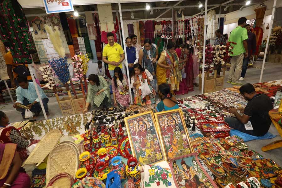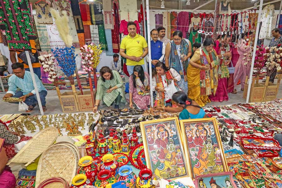 এ উদ্যোগের বীজ বোনা তৈরি হয়েছিল আগেই। রবিবার ফসল ফলল ক্ষুদিরাম অনুশীলন কেন্দ্রে। গত ৯ সেপ্টেম্বর থেকে যেখানে শুরু হয়েছিল বেঙ্গল ফেস্টিভ্যাল ফেয়ার। পুজোর মেলা। যে মেলায় হাতে গড়া পসরা নিয়ে এসেছিলেন মুর্শিদাবাদ, নদিয়া, বাঁকুড়া, বীরভূমের শিল্পীরা। রবিবার তাঁদের হাতের তৈরি পাটের ব্যাগ, ঝিনুকের গয়না, ঘর সাজানোর মাটির জিনিস, সিল্কের শাড়ি, তাঁতের কাপড়ের পসরায় ছিল ক্রেতাদের হুড়োহুড়ি। কারণ?