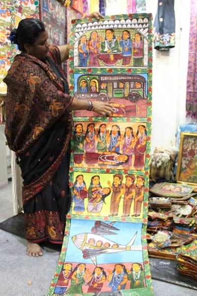 শাড়ি, পাঞ্জাবি, কুর্তি, ওড়না থেকে চিনির কৌটো, লক্ষ্মীর ভাঁড়, ট্রে, কাপ, প্লেট, ঘর সাজানোর জিনিস সব কিছুতেই পটচিত্রের নানা সৌন্দর্য ফুটে উঠেছে। তা দেখতেই মানুষের উঁকিঝুঁকি। জবা জানাচ্ছেন, বিভিন্ন দেশ থেকেও মানুষ এই পটচিত্রের সূক্ষ্ম কাজ শিখতে আসেন তাঁদের গ্রামে। পাশেই দোকান সালমা বিবির। তিনিও ওই গ্রাম থেকেই এসেছেন। জবা বলছেন, “আমাদের পটচিত্র গ্রামে সব বাড়িতেই এই কাজ চলছে। আমাদের ছোট ছোট ছেলেমেয়েরাও নিজেরাই পটচিত্রের আর্ট শিখে যায়।”