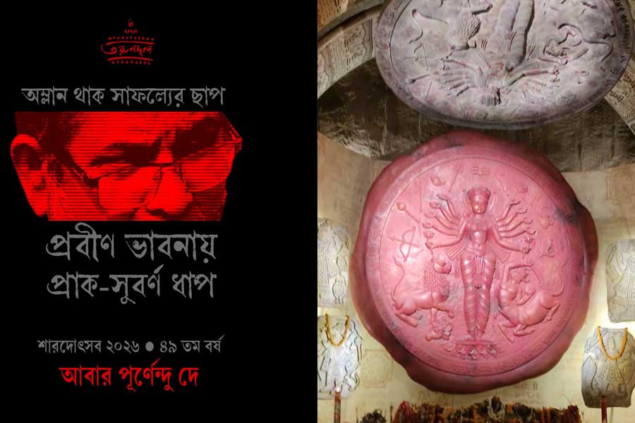 তালিকায় আছে দমদম তরুণ দল। এবার অর্থাৎ ২০২৫-এ তাদের থিম ছিল ‘ছাপ’। মণ্ডপ জুড়ে থাকা সূক্ষ্ম কাজ এবং শিল্পীর ভাবনা মুগ্ধ করেছে সকলকে। এই ভাবনার পিছনে যিনি ছিলেন, তিনি শিল্পী পূর্ণেন্দু দে। আগামী বছরও তাঁর উপরেই ভরসা রাখছেন ক্লাব কর্তারা। ইতিমধ্যে ক্লাবের অফিসিয়াল সোশাল মিডিয়া হ্যান্ডেলে সেই ঘোষণাও করে দেওয়া হয়েছে। যেখানে বলা হয়েছে, ‘অম্লান থাক সাফল্যের ছাপ/ প্রবীণ ভাবনায় প্রাক-সুবর্ণ ধাপ। ৪৯তম বর্ষ, আবার পূর্ণেন্দু দে।’