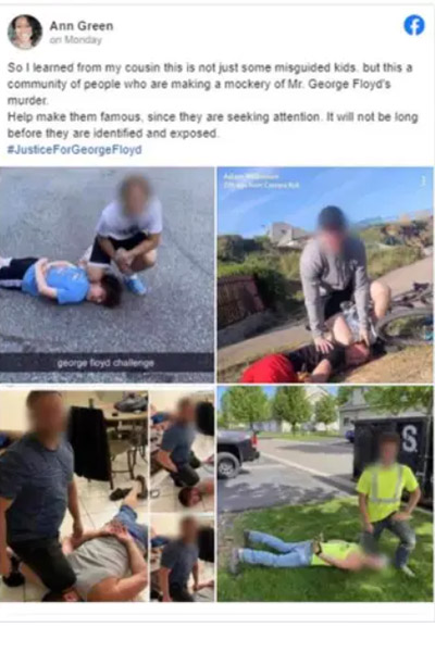 কথাতেই আছে, শিশুদের মন সাদা কাগজের মতো। কৈশোরের সময়ই তাদের চারিত্রিক গঠনের মূল ভিত্তি তৈরি হয়। তাই ‘জর্জ ফ্লয়েড চ্যালেঞ্জ’ নিয়ে রীতিমতো উদ্বিগ্ন মার্কিন মুলুকের বাবা-মায়েরা। তাদের কথায়, জর্জ ফ্লয়েড হত্যার ঘটনা কতটা ঘৃণ্যভাবে প্রভাব বিস্তার করেছে, তা সোশ্যাল মিডিয়ায় এই চ্যালেঞ্জ দেখলেই বোঝা যায়।