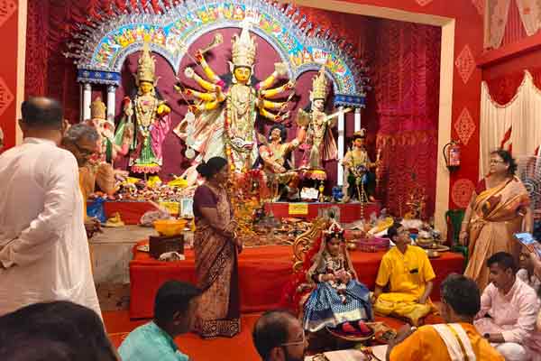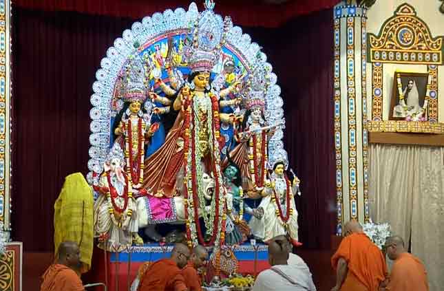 চিরাচরিত প্রথা মেনে মহাষ্টমীতে বেলুড় মঠে কুমারী পুজো। ভোর ৫টা ৪০ মিনিটে মহাস্নানের মধ্যে দিয়ে বেলুড় মঠে দেবীর মহাষ্টমীর পুজো শুরু হয়। সকাল ৯টায় বেলুড় মঠের মূল মন্দিরের পাশের অস্থায়ী মণ্ডপের বেদিতে দুর্গাপ্রতিমার সামনে নিয়ে আসা হয় ৫ বছর ২ মাস বয়সি কুমারী শ্রীণিকা মুখোপাধ্যায়কে। দুর্গা প্রতিমার সামনেই ওই কুমারীকে সিংহাসনে বসানো হয়।