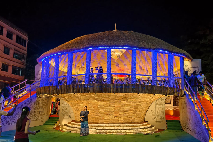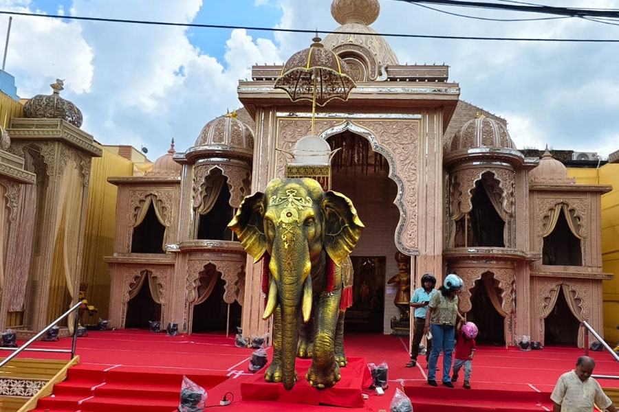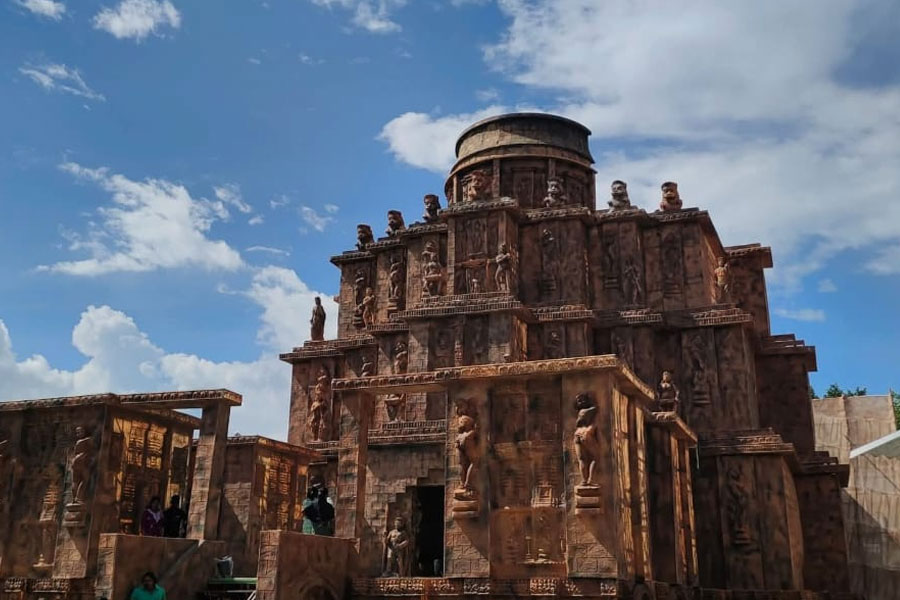 কলকাতার উত্তর ও দক্ষিণে পুজো মণ্ডপগুলিতে থিমের আধিক্য দীর্ঘদিন ধরে রয়েছে। হুগলির বিভিন্ন জায়গার পুজোতেও এবার থিম লক্ষ্য করা গিয়েছে। শ্রীরামপুর আরএমএস, গান্ধী ময়দানের পুজো ১১২ তম বছরে পড়েছে। এবারের মণ্ডপ কোনারকের সূর্য মন্দিরের আদলে তৈরি হয়েছে। এই পুজোর সভাপতি পদে আছেন শ্রীরামপুর লোকসভা কেন্দ্রের সাংসদ কল্যাণ বন্দ্যোপাধ্যায়। নিজস্ব চিত্র