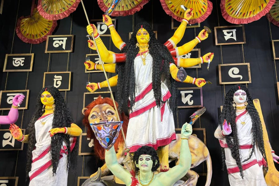 মাখলা বিবেকানন্দ সংঘ পূজা কমিটির দুর্গাপুজোর এবারের ভাবনা মাটির টানে। বর্তমানে যেভাবে উত্তরপাড়া শহরজুড়ে বৃক্ষছেদন চলছে তারই প্রতিবাদ মণ্ডপে ও দেবীর মূর্তিতে রূপ পেয়েছে। এবছর পুজোর উদ্বোধন করেন এলাকার প্রবীণ বাসিন্দা ১০৫ বছর বয়সী জোৎস্না ভৌমিক। সঙ্গে ছিলেন এলাকার প্রবীণ নাগরিকরা ও পুরসভার পুরপ্রধান। নিজস্ব চিত্র