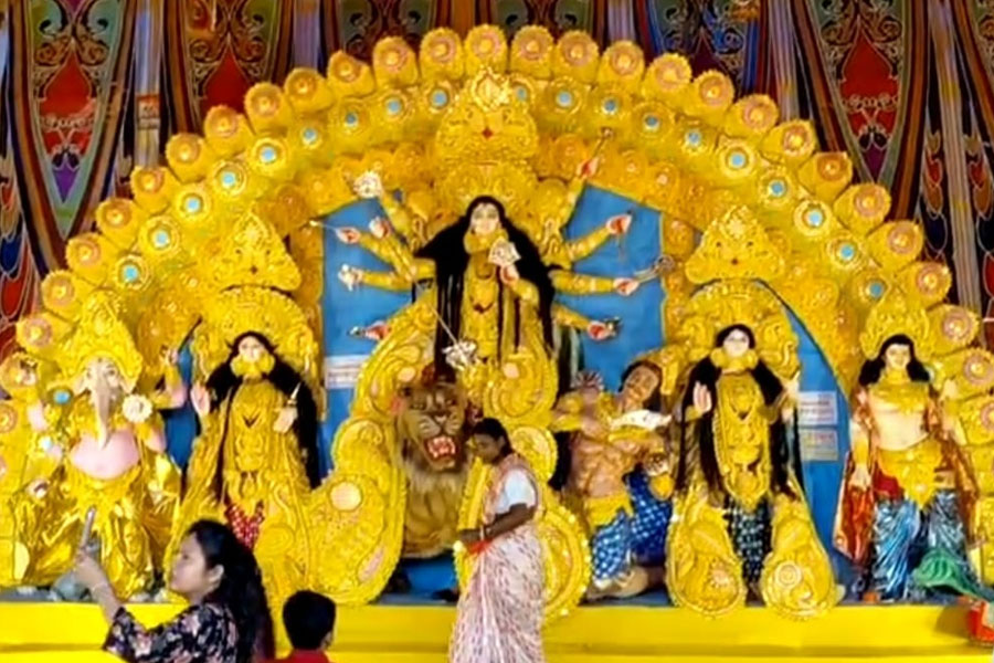 হুগলির শ্রীরামপুর মরাদান গুডবাই ক্লাবের পুজো এবার ৩১ বছরে পড়ল। এবারে থিম 'স্বাধীনতার সুখ'। এখানে প্রতিমাতেও থিম ধরা পড়েছে। দর্শনার্থীদেরও নজর কেড়েছে এই পুজো। নিজস্ব চিত্র
