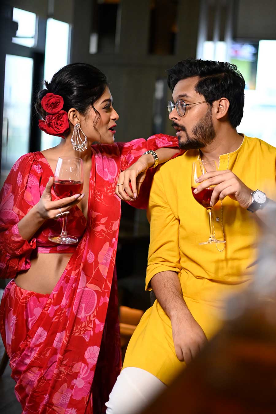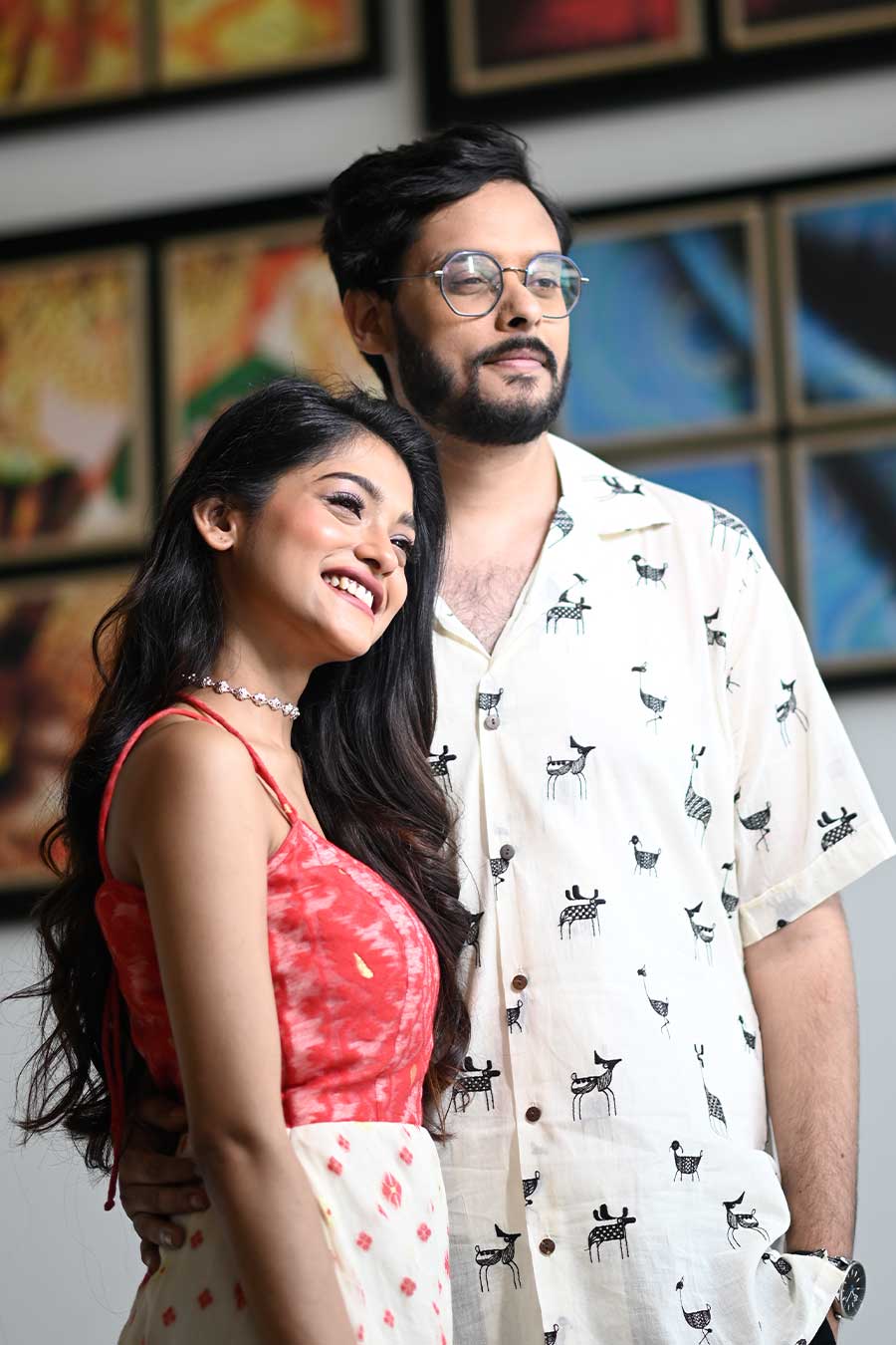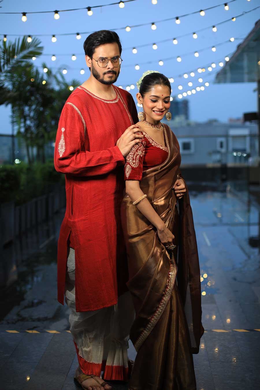 সংবাদ প্রতিদিন-এর জন্য অনুষা বিশ্বনাথন, আদিত্য সেনগুপ্তকে সাজালেন পোশাকশিল্পী অভিষেক রায়।