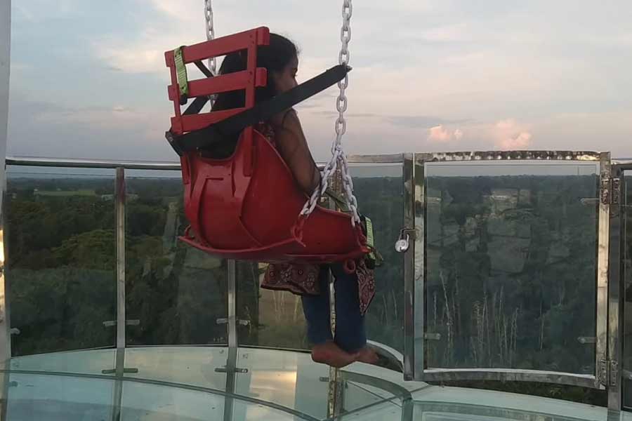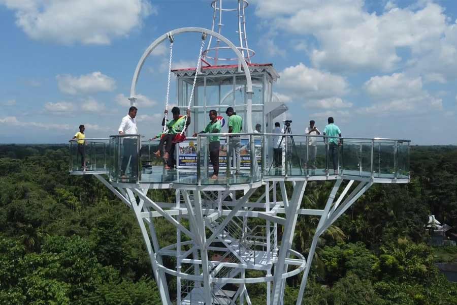 আকর্ষণীয় এই গ্লাস টাওয়ারে চড়ে ডুয়ার্সের নদী, জঙ্গল চাক্ষুস করতে পারবেন। গ্লাস টাওয়ারে রয়েছে দোলনা, সেলফি জোন, দূরবীনের বন্দোবস্ত।