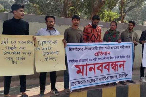 কর্মসূচি শেষে সেখানকার সদস্যরা বলেন, ”টাঙ্গাইলের (Tangail) শাড়ি আমাদের অহংকার। এই শাড়ির স্বীকৃতি ভারত কখনওই পেতে পারে না। ভারতের এই দাবি অযৌক্তিক। এ বিষয়ে যথাযথ পদক্ষেপ নেওয়া উচিত। আমরা এর প্রতিবাদ জানাচ্ছি। টাঙ্গাইলের শাড়ির বিশেষত্ব মানেই টাঙ্গাইলে তৈরি। টাঙ্গাইল শাড়ির জিআই পাওয়ার দাবিদার বাংলাদেশ। আমরা বাংলাদেশ সরকারের দৃষ্টি আকর্ষণ করছি দ্রুতই টাঙ্গাইলের শাড়িকে জিআই পণ্য হিসেবে স্বীকৃতি দেওয়ার।”