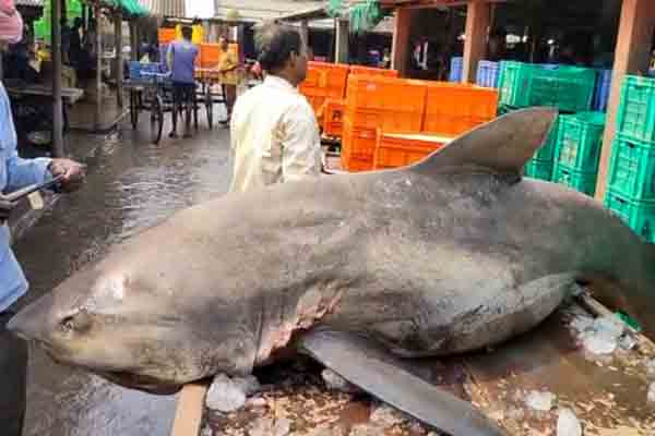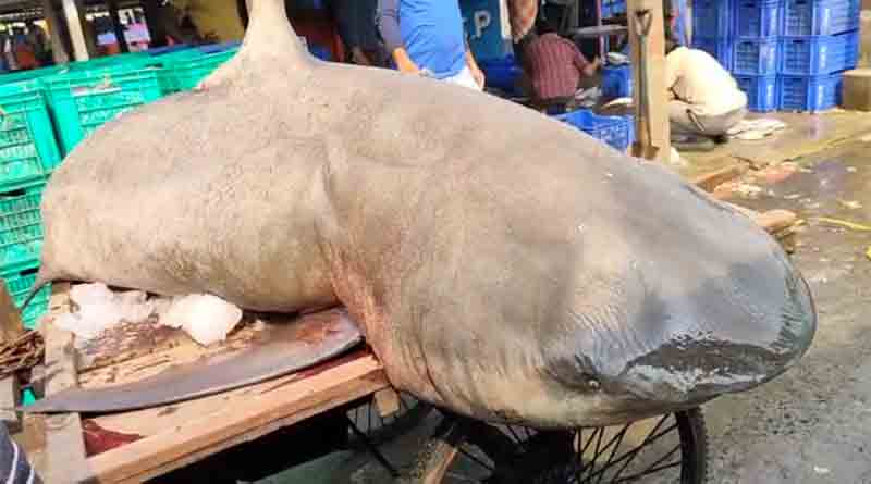 রঞ্জন মহাপাত্র, কাঁথি: ‘রুই-কাতলা-ইলিশ তো নয়/ হায় রে কী যে করি/জাল টানলাম, জলের থেকে উঠল যে…’। না জলপরী, নয় জাল টানতেই সমুদ্র থেকে উঠে এল এক বিশালাকার হাঙর। যার ওজন দু’শো কিলো। রবিবার সকালের এই ঘটনাকে ঘিরে দিঘা মোহনায় চাঞ্চল্য ছড়ায়। বিশালাকার সেই মাছ দেখতে ভিড় জমিয়েছিলেন বহু সাধারণ মানুষ।