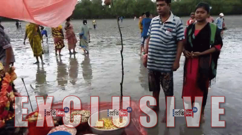 নবেন্দু ঘোষ, বসিরহাট: প্রকৃতির কী অদ্ভুত খেয়াল। সুন্দরবনের রায়মঙ্গল, ঝিলা, কালিন্দী, গোমতী ও বাকনা- এই পাঁচটি নদীর মোহনায় শ্রাবণের পূর্ণিমাতে জেগে ওঠে এক নদীচর। গত সাত বছর ধরে তার উপরেই পালিত হচ্ছে রাখিবন্ধন উৎসব। সেই সঙ্গে গঙ্গাদেবীর পুজো। এই দুই অনুষ্ঠানকে কেন্দ্র করে বৃহস্পতিবারও এই নদীর চরে কার্যত মানুষের ঢল নামতে দেখা গেল।
