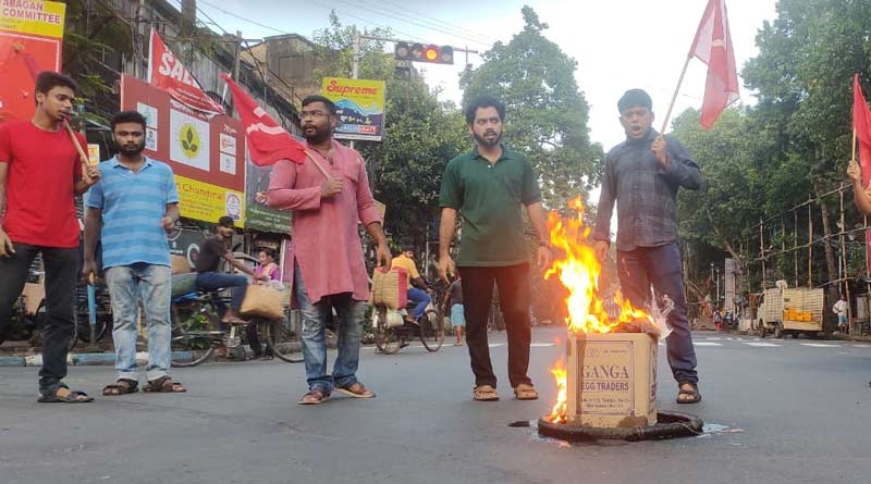 খড়গপুরেও বাম ও কংগ্রেস কর্মীরা ধর্মঘটের সমর্থনে রাস্তায় নেমেছেন। সকালে আইআইটি-র পড়ুয়া, কর্মীদের প্রবেশে বাধা দেওয়া হয় বলে অভিযোগ। পুলিশ গিয়ে পরিস্থিতি নিয়ন্ত্রণে আনে। হাওড়ার ডোমজুড়-সহ কয়েকটি জায়গায় পথ অবরোধ চলছে। চুঁচুড়ায় রাস্তায় টায়ার জ্বালিয়ে বিক্ষোভে শামিল ধর্মঘট সমর্থকরা।