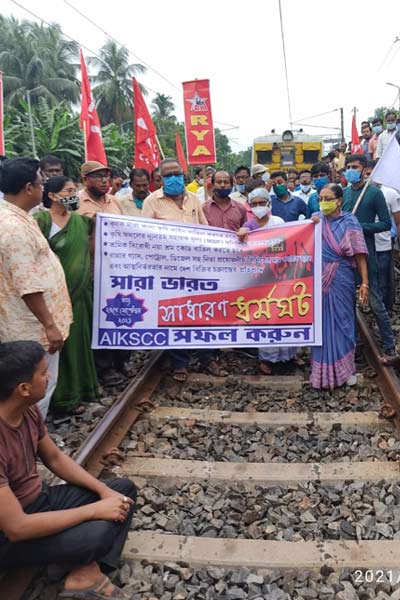 এদিকে, কিষাণ মোর্চার ডাকা ধর্মঘটকে সমর্থন জানিয়ে সিপিএম (CPM) কর্মী, সমর্থকরা যাদবপুর স্টেশনে রেল অবরোধ করেন সকালে। স্টেশন সংলগ্ন এলাকায় মিছিলও করে সিপিএম। উত্তর ২৪ পরগনার শ্যামনগরেও ট্রেন আটকে দেওয়া হয়। পতাকা হাতে সিপিএম সমর্থকরা রেলট্র্যাকের উপর বসে অবরোধ শুরু করেন। তাঁদের সাফ কথা, কেন্দ্রের আনা নতুন তিনটি কৃষি আইন কৃষক স্বার্থ বিরোধী। তাই তা প্রত্যাহার করা না হলে প্রতিবাদ চলবেই।