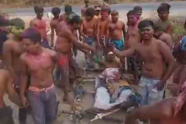 নন্দন দত্ত, সিউড়ি: জ্যান্ত ‘মরা’ নিয়ে দোল (Holi 2023) খেলা। এমন আজব ‘খেলা’ হল বুধবার সিউড়ির উত্তর রায়পুর গ্রামে। গ্রামের লোক একে বলে ‘ধুলোরি’। মৃত্যুর রোষ থেকে বাঁচতে তাঁরা ‘মৃতদেহ’ নিয়ে গোটা গ্রামজুড়ে হোলি খেলেন। রঙের সঙ্গে আবির, ফাগের সঙ্গে কাদা মিশিয়ে চলে খেলা। দুপুরের পরে সে খেলা শুরু হয়। চলে বিকেল পর্যন্ত। গোটা গ্রাম ঘুরে ‘মৃতদেহে’র শোভাযাত্রা শেষে গ্রামের প্রান্তে চন্দ্রভাগা নদীতে গণস্নান সেরে গ্রামে ফেরেন তাঁরা।