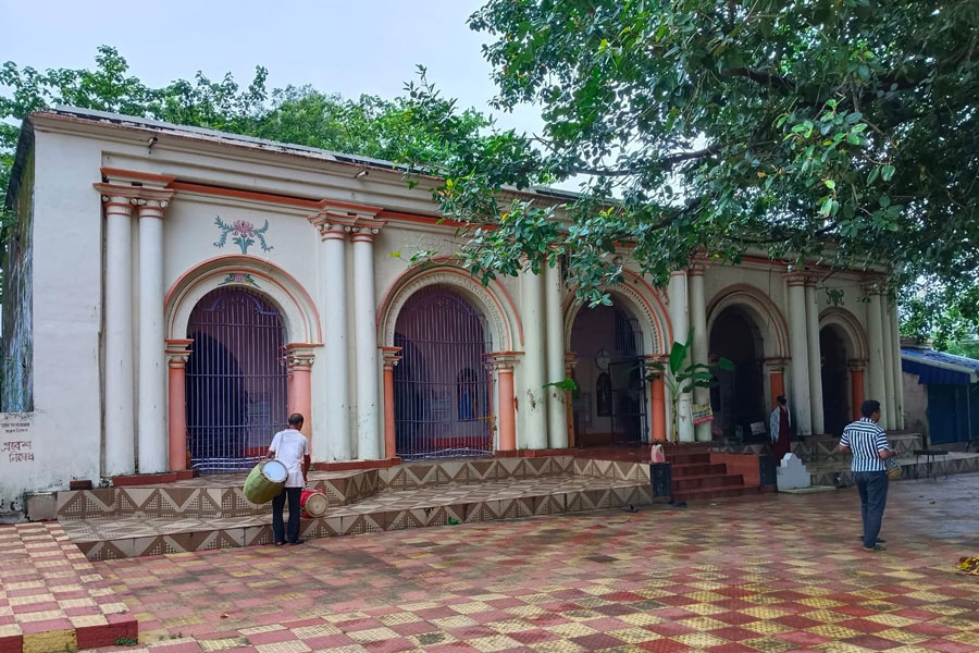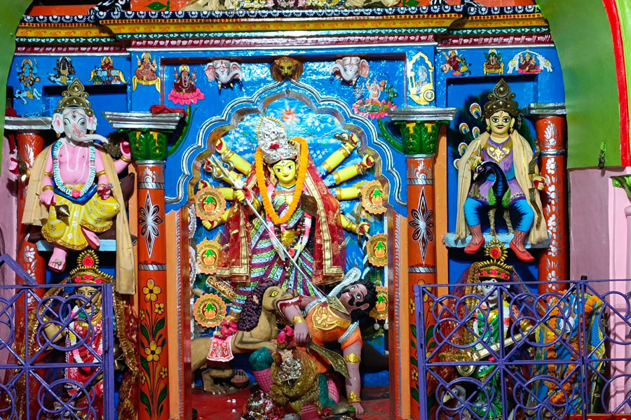 অসিত রজক, বিষ্ণুপুর: বৃহস্পতিবার সকালে শহর কাঁপিয়ে পর পর ৯ বার তোপের শব্দ। বিষ্ণুপুরের মল্লরাজ পরিবারে ব্যস্ততা চরমে । না কোনও অঘটন না। অকাল বোধনের আগেই শুরু হল পুজো(Bonedi Barir Durga Puja)। আদ্রা নক্ষত্র যোগে নব্যমাদিকল্পে ‘বড়ঠাকুরানি’কে মন্দিরে আনা হল। তাঁর আগমনকে স্বাগত জানানো হয় ৩টি তোপধ্বনির মাধ্যমে। এর পর গোপাল সায়রের ঘাটে দেবীর শুদ্ধাচারের পর প্রবেশ করলেন রাজদরবার সংলগ্ন মৃণ্ময়ীর মন্দিরে। মন্দিরের অদূরে তখনও ৩ বার গর্জে উঠল কামান। সেখানেই দেবীকে অন্নভোগ নিবেদন করলেন রাজ পরিবারের কুলপুরোহিত। ফের ৩ বার গর্জে উঠল মল্লরাজদের ঐতিহ্যের তোপ।