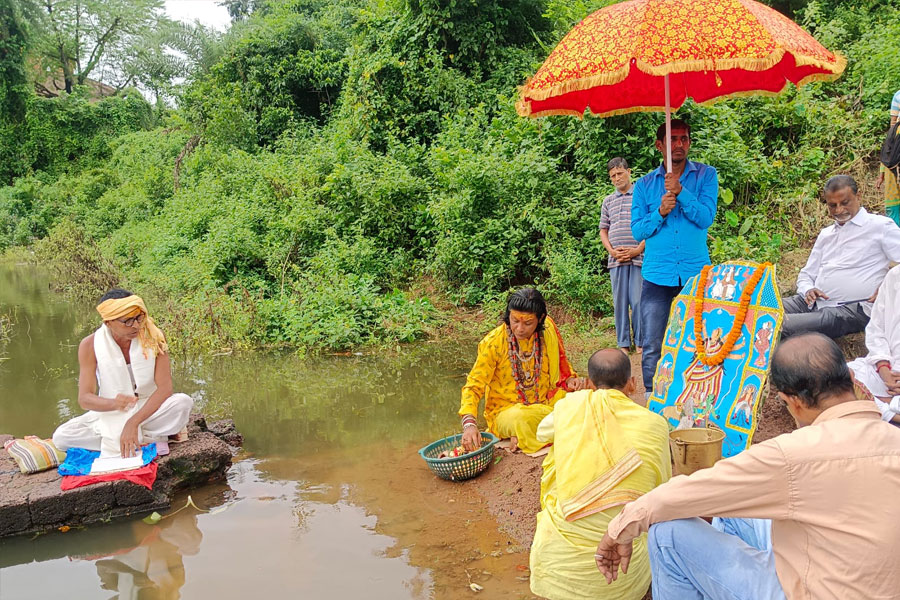বুধবার জিতাষ্টমীর সন্ধ্যায় রাজ পরিবারের পুজো শুরুকে দেবী মৃণ্ময়ীর বিল্ল-বরণের মাধ্যমে। ওইদিন মায়ের বোধন, আমন্ত্রণ ও অধিবাস সম্পূর্ণ হয়েছে। হাজার বছরের প্রাচীন এই মৃণ্ময়ী দেবীর শারদীয়া অকাল বোধনের পর বিষ্ণুপুরে শুরু হয়ে গেল পুজো। ৯৯৭ খ্রিস্টাব্দে বিষ্ণুপুরের ১৯ তম মল্লরাজ জগৎমল্ল জিতাষ্টমী তিথিতে পিতৃপক্ষেই শুরু করেছিলেন রাজ পরিবারের আরাধ্য দেবী মৃণ্ময়ীর এই শারদীয়া পুজো। পরম্পরার সেই ধারাবাহিকতা আজও অপরিবর্তিত। দুর্গা সপ্তমীর সকালে মন্দিরে প্রবেশ করবেন পটের দেবী মহালক্ষ্ণী বা মেজঠাকুরানি ও মহাসরস্বতী বা ছোটঠাকুরানি। সেই সময় ফের সেই তোপে আগুন দেওয়া হবে।