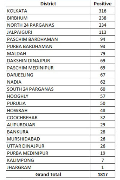 পরিসংখ্যান অনুযায়ী, করোনার প্রভাব সবচেয়ে কম ঝাড়গ্রামে। একদিনে মাত্র একজন নতুন করে কোভিড আক্রান্ত হয়েছেন। শনিবার রাজ্যে করোনা পজিটিভিটি রেট ছিল ১২.৬৪ শতাংশ। রবিবার তা আরও কিছুটা কমে দাঁড়াল ১২.৪ শতাংশ।