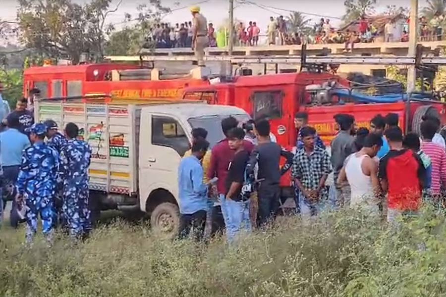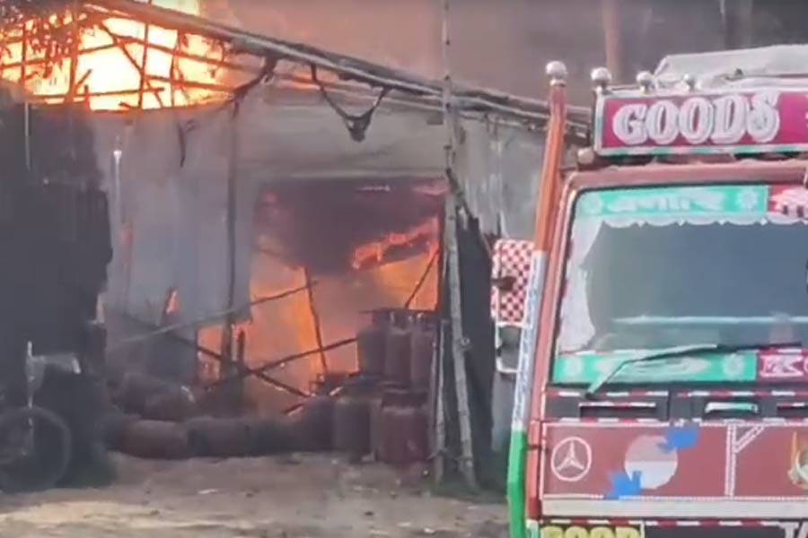 অর্ণব দাস, বারাসত: ভরদুপুরে আচমকাই পরিবেশ বদল। শান্ত এলাকায় দাউদাউ জ্বলে উঠল আগুনের গোলা। কালো ধোঁয়ায় ছেয়ে গেল আকাশ। পর পর সিলিন্ডার বিস্ফোরণে মুহূর্তের মধ্যেই এমন ভয়াবহ পরিবেশ উত্তর ২৪ পরগনার আমডাঙায়। স্থানীয় বাসিন্দাদের অভিযোগ, বহুদিন ধরে বেআইনিভাবে গ্যাসের কারখানা চলছিল এলাকায়। সেখানেই আচমকা সিলিন্ডার ফেটে যায়। পর পর সিলিন্ডার বিস্ফোরণের শব্দে কেঁপে ওঠেন এলাকাবাসী। প্রত্যক্ষদর্শীরা জানান, একটি সিলিন্ডার ফেটে অর্ধেকাংশ কার্যত উড়ে গিয়ে পড়ে পাশের বাড়িতে। তার পরই দাউদাউ করে আগুন জ্বলে ওঠে। খবর পেয়ে দ্রুত ঘটনাস্থলে পৌঁছয় দমকলের বেশ কয়েকটি ইঞ্জিন। যুদ্ধকালীন তৎপরতায় শুরু হয় আগুন নেভানোর কাজ।