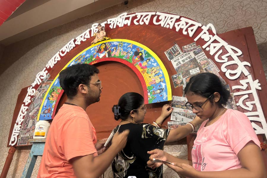 অনুপম ধরের কথায়, ”আর জি করে ঘটে যাওয়া অত্যন্ত বেদনাদায়ক ঘটনা। এখন প্রতিটি ঘরের প্রতিবাদ হয়ে দাঁড়িয়েছে। কর্মক্ষেত্রে মেয়েদের সুরক্ষার প্রয়োজনীয়তার দাবি উঠেছে। এনিয়ে চিকিৎসক-সহ সাধারণ মানুষ পথে নেমে সোচ্চার হয়েছেন। পুজোর মধ্যেও মানুষ যেন এই প্রতিবাদ ভুলে না যায়, সেই বার্তা দিতেই এই ভাবনা। সঙ্গে তাঁর আক্ষেপ, যেখানে ত্রেতা ও দ্বাপর যুগের দুটি বড় যুদ্ধ হয়েছে নারীর সম্মান রক্ষার্থে, সেখানে এখনও আমাদের নির্যাতিতার বিচারের দাবি জানাতে হচ্ছে।” তাঁর এই প্রতিবাদের সহযোগী স্ত্রী ডাঃ ইন্দ্রাণী ঘোষের বক্তব্য, ”চিকিৎসক হওয়ার পাশাপাশি আমিও একজন নারী। আর জি করে আমারই সহকর্মী দিদির সঙ্গে নারকীয় ঘটনাটি ঘটে গিয়েছে। পুজোর দিনে যাঁরা প্রতিমা দর্শনে আসবেন, তাঁদের মনেও যেন নির্যাতিতা সুবিচার না পাওয়া পর্যন্ত প্রতিবাদের ভাবনা থাকে, সেই কারণেই এমনটা করা।”