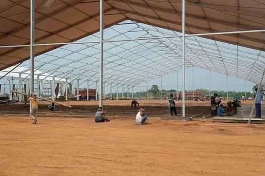 অপরদিকে এদিন জিন্দাল ক্যাম্পাসেও প্রস্তুতি ঘিরেও চরম ব্যস্ততা দেখা গিয়েছে। মণ্ডপ তৈরির কাজ আগেই শুরু হয়েছিল। গতকাল বৃহস্পতিবার ঝড়বৃষ্টিতে মণ্ডপের একাংশ ভেঙে পড়ে। তবে রাতের মধ্যেই সেই মণ্ডপ ফের মাথা তুলে দাঁড় করানো সম্ভব হয়েছে। জিন্দাল কর্তারা জানিয়েছেন, মূলমঞ্চের কোনও ক্ষতি হয়নি। হ্যাঙার লাগানোর কাজ চলছিল। তারই মধ্যে ঝড়বৃষ্টিতে ওই বিপত্তি ঘটে। তবে তা বড় কিছু নয়। ঝড়বৃষ্টির কথা মাথায় রেখে শক্তপোক্ত তাঁবু খাটানো হচ্ছে বলে খবর। এদিকে মঙ্গলবার কলেজ ময়দানে মুখ্যমন্ত্রীর সভায় জনসমাগম করতে দলের বিধায়ক ও ব্লক সভাপতিদের নিয়ে বৈঠক করেন তৃণমূল কংগ্রেস বিধায়ক তথা সাংগঠনিক জেলা সভাপতি সুজয় হাজরা। হাজির ছিলেন মন্ত্রী শ্রীকান্ত মাহাতো, বিধায়ক দীনেন রায়, পরেশ মুর্মু, সভাধিপতি প্রতিভা মাইতি, জেলা পরিষদের দলনেতা মহম্মদ রফিক, প্রাক্তন বিধায়ক প্রদ্যোৎ ঘোষ প্রমুখ। সুজয়বাবু বলেছেন, “প্রশাসনের কাজ প্রশাসন করবে। তবে দলের নেতা-কর্মীরা সেদিন মুখ্যমন্ত্রীকে স্বাগত জানাতে কলেজ ময়দানে হাজির থাকবেন।”