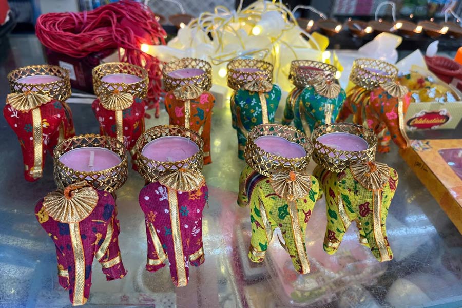 দীপাবলিতেও অনেক জায়গায় দীপান্বিতা লক্ষ্মীপূজা হয়। ফলে এই প্রদীপের কদরই আলাদা। পুরুলিয়া শহরের পোস্ট অফিস মোড়ে একটি নামকরা স্টেশনারি দোকানের মালিক নরেশ ফোগলার কথায়, “হস্তী প্রদীপ পুরুলিয়ায় এবার রীতিমতো ট্রেন্ডিং। এই প্রদীপে ‘রাজস্থানি লুক’ রয়েছে। এত রঙবাহারি যে সহজেই চোখ টানছে। তাছাড়া হাতির পিঠে প্রদীপ একটা আলাদা অর্থ বহন করছে। এছাড়া মিঠাই প্রদীপের বাজারও ব্যাপক। এগুলো সবই প্রিমিয়াম। এখনও এগুলো দোকানের সামনে প্রদর্শন করিনি। ধনতেরাস তিথি পড়ার পর থেকেই করব।” এই প্রদীপগুলির একেকটির দাম ৩০ টাকা। যোধপুর লাড্ডু মিঠাই প্রদীপের দামও একই। ওই প্রদীপগুলো প্যাকেট করে বিক্রি হচ্ছে। চারটি প্রদীপ নিয়ে একটি প্যাকেট। একইভাবে জিলিপি, কাজুর বরফি মিঠাই প্রদীপের দামও ১২০ টাকা। প্রত্যেকটি প্যাকেটে চারটি করেই থাকছে।