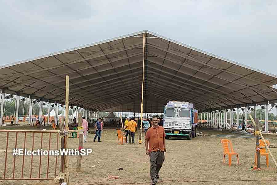 মোদির জনসভাস্থলে তিনটি হেঙ্গার করা হয়েছে। এক- একটি হেঙ্গারে সর্বোচ্চ ১০ হাজার জমায়েত হয়। ফলে বাকিরা দাঁড়িয়ে থাকবেন। হেঙ্গারে বসার জন্য চেয়ার থাকছে। থাকছে জলের পাউচ। জনসভাস্থলের উল্টোদিকে অস্থায়ী হেলিপ্যাড করা হয়েছে। সেখানেই প্রধানমন্ত্রী নরেন্দ্র মোদী নেমে পুরুলিয়া-বাঁকুড়া জাতীয় সড়ক পার হয়ে সড়কপথে জনসভা স্থলে আসবেন।