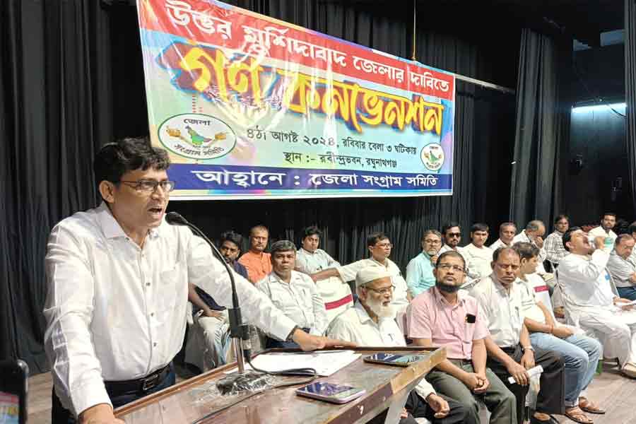 শাহজাদ হোসেন, ফরাক্কা: রাজ্যভাগ নিয়ে বিতর্কের মধ্যেই এবার মুর্শিদাবাদ জেলা ভাগের দাবি। অবিলম্বে দাবি পূরণের দাবিতে জঙ্গিপুর মহকুমা জুড়ে জোরদার আন্দোলনের ডাক। রবিবার দুপুরে মুর্শিদাবাদের রঘুনাথগঞ্জ থানার রবীন্দ্র ভবনে জেলা সংগ্রাম সমিতির গণকনভেনশন থেকে উওর মুর্শিদাবাদ জেলার দাবিতে আন্দোলনের কর্মসূচি ঘোষণা করা হয়। এদিনের জেলাভাগের দাবিতে গণকনভেনশনে হাজির ছিলেন বিভিন্ন ক্লাব, স্বেচ্ছাসেবী সংস্থা, শিক্ষক, অধ্যাপক, আইনজীবী, চিকিৎসক থেকে বিভিন্ন স্তরের সাধারণ মানুষ।