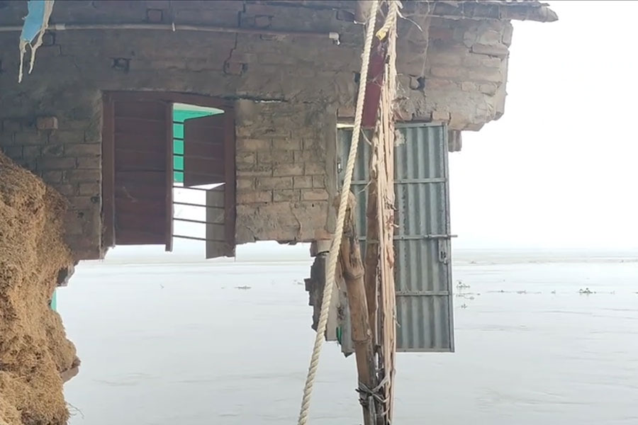 সামশেরগঞ্জে গঙ্গাভাঙন নতুন নয়। আগেও নিমেষে নদীগর্ভে তলিয়ে গিয়েছে বহু বাড়ি, গাছ, মন্দির। সোমবার একইঘটনার পুনরাবৃত্তি ঘটল সামশেরগঞ্জের উত্তর চাচণ্ড এবং মধ্য চাচণ্ড এলাকায়। রাতে খাওয়াদাওয়া সেরে ঘুমোচ্ছিলেন বাসিন্দারা। আচমকা বিকট শব্দে ঘুম ভাঙতেই টের পান বাড়ির একাংশ গঙ্গার গ্রাসে। তড়িঘড়ি ঘর ছাড়েন তাঁরা। তলিয়ে গিয়েছে বেশ কয়েকটি গরু, বহু গাছ। প্রাণে বাঁচলেও বাড়ি তলিয়ে গিয়েছে গঙাগর্ভে। আশপাশের বেশ কয়েকটি বাড়িও বিপজ্জনক অবস্থায়। ফাটল দেখা গিয়েছে নদী সংলগ্ন মন্দিরে।