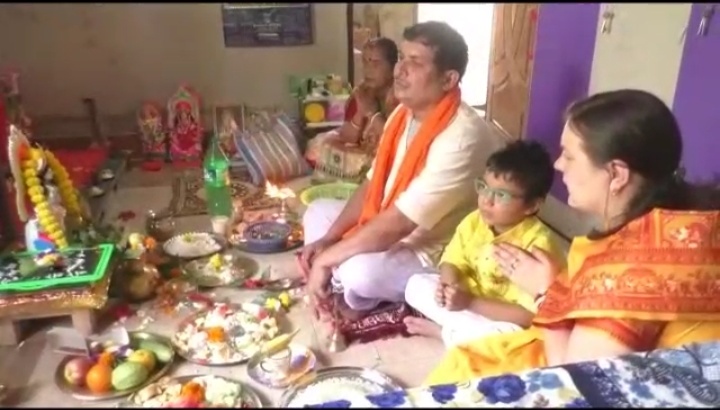 ৮ বছর আগে মূলত ভালবাসার টানেই একাতেরিনা চলে এসেছিলেন ভারতে। চলে আসেন গাংনাপুরের বিবেকানন্দপল্লির শ্বশুরবাড়িতে। স্বামী এবং শাশুড়িকে নিয়ে শুরু হয় সংসার জীবন। ধীরে ধীরে বাঙালি কৃষ্টি-সংস্কৃতি, আচার-অনুষ্ঠান শিখতে শুরু করেন। এক্ষেত্রে তাঁর শিক্ষাগুরু ছিলেন শাশুড়ি রীতা দাস। ৩ বছরের মাথায় পুত্র সন্তানের জন্ম দেন একাতেরিনা। চলতি বছরেই ছেলে দত্তাত্রেয়র ৫ বছর পূর্ণ হল। আর তাই নিজেই উদ্যোগ নিয়ে শ্বশুরবাড়িতে প্রথম সরস্বতী পুজোর আয়োজন করেন। মঙ্গলবার ভোরবেলা ঘুম থেকে উঠেই ঘরদোর পরিষ্কার-পরিচ্ছন্ন করে, রান্নাবান্না সেরে শুরু করেছিলেন পুজোর কাজ। এরপর ছেলেকে পাশে বসিয়ে শঙ্খ বাজিয়ে দিয়েছেন পুষ্পাঞ্জলি। বাংলা ভাষাতেই হয়েছে দত্তাত্রেয়র হাতেখড়ি।