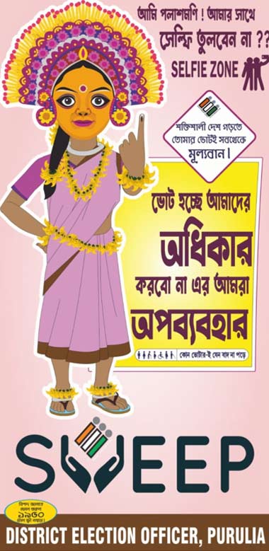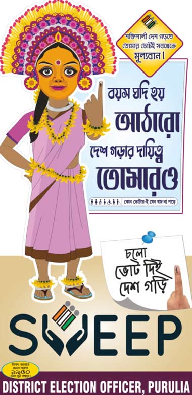 এবার এই কাজে জেলার ম্যাসকট ‘পলাশমণি’ নির্ভয়ে ভোটদানে প্রচার চালাবে। এই ম্যাসকট প্রশংসিত হয়েছে জাতীয় নির্বাচন কমিশনেও (Election Commission)। তাদের নির্দেশেই উত্তর ২৪ পরগনা ও হুগলির সঙ্গে পুরস্কার পাচ্ছে পুরুলিয়া। এই ক্যাটাগরিতে বরাবর উজ্জ্বলতার ছাপ রাখে বনমহল পুরুলিয়া। অতীতে ‘ভোটেশ্বর’ ম্যাসকটও পুরস্কার এনে দিয়েছিল এই জেলাকে। পুরস্কৃত হয়েছিলেন তৎকালীন জেলাশাসক তন্ময় চক্রবর্তী ও রাহুল মজুমদার। ভোটার তালিকায় নাম তুলতে গত বছরের ১২ই আগস্ট থেকে ধারাবাহিক প্রচার শুরু করে পুরুলিয়া জেলা প্রশাসন। ১৪ই আগস্ট ‘কন্যাশ্রী দিবসে’র প্রাক্কালে কন্যাশ্রীদের নিয়ে সাইকেল র্যালি করে ভোটার তালিকায় নাম তোলার আহ্বান রাখা হয়। সেই সাইকেল র্যালিতে অংশ নিয়েছিলেন জেলাশাসক রজত নন্দা থেকে পুলিশ সুপার (SP) অভিজিৎ বন্দ্যোপাধ্যায়। ওই কর্মসূচি নজর কাড়ে রাজ্য নির্বাচন কমিশনে।