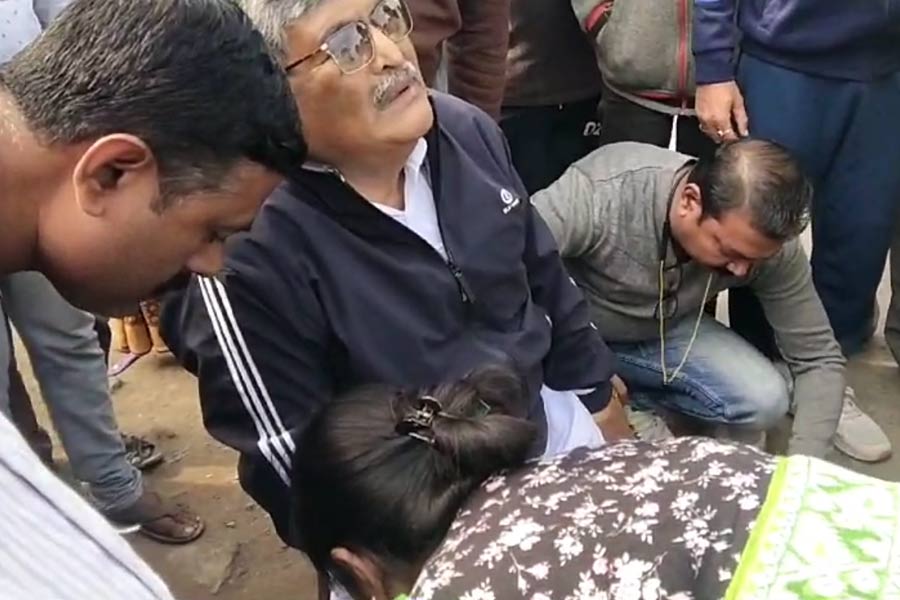 নিকাশি নালার উপর পা পড়ে জখম বিধায়ক অসিত মজুমদার। নিজস্ব ছবি।