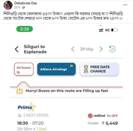 ট্রেন না চললে বিকল্প পথ বাস, বিমান কিংবা টানা গাড়ি। অভিযোগ, তিন ক্ষেত্রেই ভাড়া এতটা বেড়েছে যে তাতে চাপাই দায়। সাধারণত বাসে শিলিগুড়ি-কলকাতা বা কলকাতা-শিলিগুড়ি রুটের ভাড়া থাকে ১৮০০-২৫০০ টাকার মধ্যে। সেই ভাড়া একলাফে ৫ হাজার টাকা ছাড়িয়েছে। বিমানের ভাড়া ১০ হাজার টাকার বেশি। আবার যেক’টি ট্রেন চলছে, তাতেও তৎকাল টিকিট মিলছে না। ফলে ব্যাপক সমস্যা তৈরি হয়েছে। এমনকী, শিলিগুড়ি বা নিউ জলপাইগুড়ি থেকে নিকটবর্তী শহরে পৌঁছনোর জন্য গাড়ির খরচ বেড়েছে অনেকটাই। আবার শিলিগুড়ি থেকে কলকাতায় আসার টানা গাড়ির ভাড়া পড়ছে প্রায় ৩০ হাজার টাকা। সবমিলিয়ে বেজায় বিপাকে পর্যটকরা।