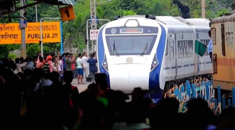 সুমিত বিশ্বাস, পুরুলিয়া: পুষ্পবৃষ্টি, ব্যান্ড পার্টি, মিষ্টিমুখ। বন্দে ভারত এক্সপ্রেসের (Vande Bharat Express) উদ্বোধনে হাই স্পিড ট্রেনকে এভাবেই স্বাগত জানালো জঙ্গলমহল পুরুলিয়া। জঙ্গলমহলের এই জেলার বিভিন্ন স্টেশন দিয়ে যাওয়া এই ট্রেনকে দেখতে রবিবার ভিড় উপচে পড়ে। কিন্তু এই উচ্ছ্বাস, আবেগের মধ্যেই তাল কাটে ‘জয় শ্রীরাম’ স্লোগানে। ভারতীয় রেলের (Indian Railway) সরকারি অনুষ্ঠানে বন্দে ভারত পুরুলিয়া স্টেশন থেকে ছেড়ে যাওয়ার সময় ‘জয় শ্রীরাম’ (Jai SriRam) স্লোগান শোনা যায়। আর তাতেই বিতর্কে জড়াল রেল।