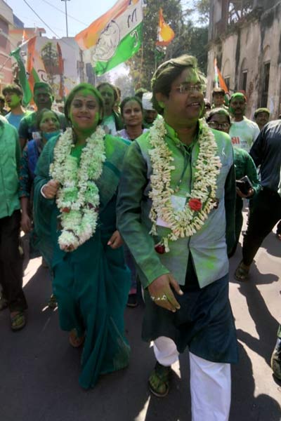 শুভজিতের বাবা অশোক সাউ একসময়ের বিধায়ক এবং চন্দননগর পুরনিগমের প্রাক্তন মেয়র। তিনি যে ওয়ার্ড থেকে দাঁড়াতেন, সেই ১২ নম্বরেই এবার প্রার্থী হয়েছেন পুত্রবধূ ঋতুপর্ণা। তবে শুভজিতের ওয়ার্ড বদল হয়েছে। তিনি গতবার ১৬ নম্বর ওয়ার্ড থেকে জিতলেও এবার দাঁড়িয়েছেন ১৩ নম্বর ওয়ার্ড থেকে। তাই নতুন ওয়ার্ড নিয়ে টেনশন কিছুটা বেশিই ছিল বলে জানাচ্ছেন শুভজিৎ। তাঁর লড়াইও ছিল কঠিন। তিনি জিতেছেন ৬৩০ ভোটের ব্যবধানে। আর স্ত্রী জিতেছেন ১৭৫৯ ভোটে। জয়ের পর স্বভাবতই খুশি ঋতুপর্ণাও। বলেন, “যতই ভোটের ময়দানে লড়াই করি, ভালবাসার দিনটা কি ভোলা যায়?” আর এবার তো ভ্যালেন্টাইনস ডে-তে উপরি পাওনা, দম্পতির জোড়া জয়।
