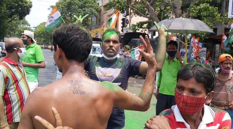 দুপুর ১২.১০: দিকে দিকে তৃণমূল প্রার্থীদের এগিয়ে থাকার খবর মিলতেই কালীঘাটে, মমতা বন্দ্যোপাধ্যায়ের বাড়ির সামনে অনুরাগীদের ঢল, সবুজ আবির নিয়ে খেলা।