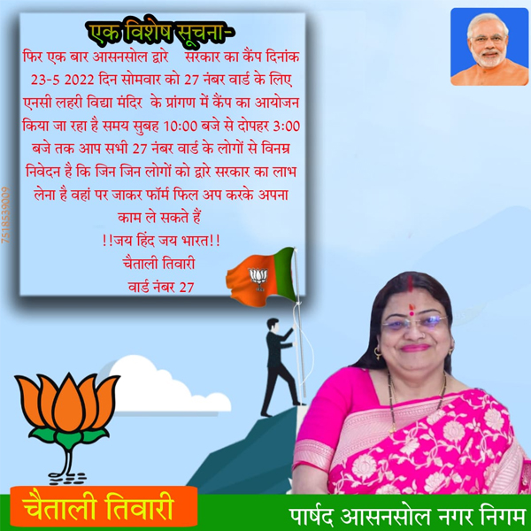 এপ্রসঙ্গে আসানসোল পুরনিগমের মেয়র বিধান উপাধ্যায় বলেন, “দুয়ারে সরকার প্রকল্প রাজ্যের অন্যতম জনপ্রিয় ও জনমুখী প্রকল্প। বিজেপি কাউন্সিলর সেই প্রকল্পের শিবিরে প্রচার করছেন তা অভিনন্দনযোগ্য। কিন্তু সেখানে প্রধানমন্ত্রী ও জেপি নাড্ডার ছবি দেওয়া মানে ভুল বার্তা দেওয়া।” ঘটনা প্রসঙ্গে চৈতালি তিওয়ারির সাফাই, “২৩ মে আমার ওয়ার্ডে দুয়ারে সরকারের শিবির। আমি ওয়ার্ডের বাসিন্দাদের ওই প্রকল্পের সুবিধা নিতে বলেছি। এর মধ্যে বিতর্কের কিছুই নেই।” তাঁর দাবি, “জনগণের করের টাকায় সরকার পরিষেবা দেয়। সেই জনগণের মধ্যে আসানসোল পুর এলাকার বিজেপি মনোভাবাপন্ন ২ কোটি ২৮ লক্ষ মানুষ রয়েছে। সরকারি প্রকল্পে তাঁদেরও অধিকার রয়েছে।”