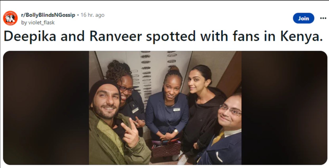 ভাইরাল হওয়া ছবিতে কেনিয়ার ভক্তদের সঙ্গে হাসিমুখে পোজ দিতে দেখা গেল রণবীর-দীপিকাকে। আপাদমস্তক কালো পোশাকে অভিনেত্রী। অন্যদিকে জলপাই রঙের হুডি-জ্যাকেট আর বিনি ক্যাপ পরনে রণবীরকে নিজেই সেলফি তুলতে দেখা গেল।