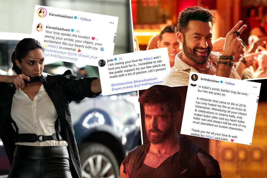 সংবাদ প্রতিদিন ডিজিটাল ডেস্ক: মুক্তির আগে থেকেই দর্শকমহলে এক আলাদা উন্মাদনা ছিল অয়ন মুখোপাধ্যায়ের ছবি ‘ওয়ার ২’ ঘিরে। আর মুক্তির পর থেকে সেই ছবিকে দর্শক ঠিক কতটা ভালোবাসা দিয়েছেন তা আলাদা করে বলার অপেক্ষা রাখে না। ১৪ আগস্ট এই ছবি মুক্তির পর থেকে বক্সঅফিসে বিপুল সাফল্য পেয়েছে। আর মুক্তির মাত্র দুই দিনেই ‘ওয়ার ২’ পার করেছে ১০০ কোটির বাণিজ্য। দুই সুপারস্টারকে একসঙ্গে পর্দায় দেখে খুশির জোয়ারে ভেসেছেন অনুরাগীরা। সিনেমাহলের ভিতরে সেলিব্রেশনে মেতেছেন দর্শক। এবার ১০০ কোটির সাফল্য পাওয়ার পর ভক্তদের ধন্যবাদ জানালেন হৃতিক রোশন, জুনিয়র এনটিআর ও কিয়ারা আডবানি। সোশাল মিডিয়ায় পোস্ট করে ধন্যবাদ জানিয়ে কী লিখলেন তাঁরা?