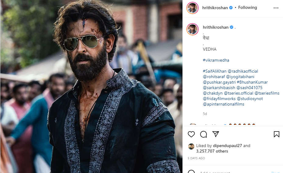 ১০ জানুয়ারি ৪৮ বছর বয়সে পা দিলেন হৃত্বিক। সুঠাম, পেশীবহুল চেহারায় হৃত্বিক এখনও চ্যালেঞ্জ ছুঁড়তে পারেন বলিউডের উঠতি নায়কদের। হৃত্বিকের ঝুলিতে হিটের থেকে ফ্লপ সিনেমার সংখ্যা বেশি থাকলেও, হৃত্বিকের ফ্যান ফলোয়িংয়ে তার ঘাটতি নেই। জন্মদিনেই তা যেন প্রমাণ করলেন নায়ক। সোশ্যাল মিডিয়ায় নতুন ছবি ‘বিক্রম বেদা’র ফার্স্টলুক শেয়ার করে অনুরাগীদের একেবারে মন জিতে নিলেন তিনি।