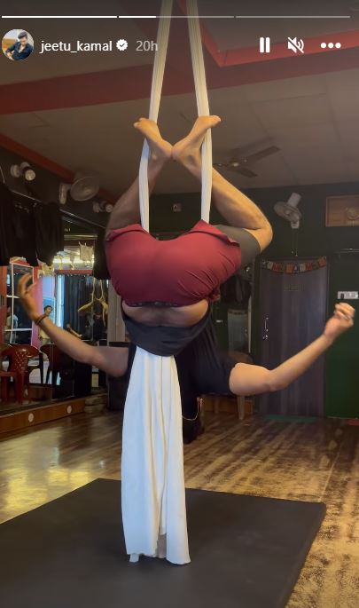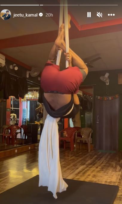 জীতু যে ভিডিও পোস্ট করেছেন সেখানে দেখা গিয়েছে, এক নতুন ধরনের কসরতে ব্যস্ত জীতু। যেখানে তাঁকে দেখা গিয়েছে, কাপড়ে পা বেঁধে উলটো হয়ে ঝুলছেন জীতু। ইনস্টাগ্রামের স্টোরিতেই এই ব্যায়ামের ভিডিও দিয়েছেন জীতু।