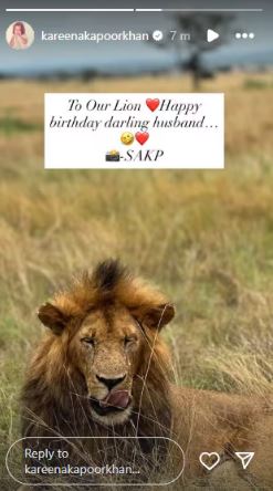 সইফ যেহেতু নেটজগৎ থেকে শতহস্ত দূরে, তাই বেবোর সোশাল মিডিয়া অ্যাকাউন্টে উঁকি দিলেই বলিউড নবাবের গতিবিধির খবর মেলে। কখনও ছুটির মেজাজে নবাব স্বামীকে ক্যামেরাবন্দি করেন তিনি, তো কখনও বা আবার সন্তানদের সঙ্গে সইফের সময় কাটানোর ঝলকও দেখা যায় তাঁর প্রোফাইলে। ১৬ আগস্ট, শনিবার ৫৫ বছরে পা রাখলেন সইফ আলি খান। আর সেই প্রেক্ষিতেই স্বামীর জন্মদিনে আদুরে বার্তা বেবো। ইনস্টা স্টোরিতে সিংহের ছবি শেয়ার করে করিনা লিখেছেন, ‘আমাদের পরিবারের সিংহ, তোমাকে জন্মদিনে অনেক শুভেচ্ছা। আমার প্রিয় স্বামী।’ সঙ্গে হৃদয় ইমোজিজুড়ে দিয়েছেন অভিনেত্রী।