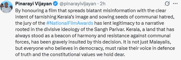This movie getting the national award is the most perfect example of how the BJP sponsors and promotes hate from the highest echelons of government.…