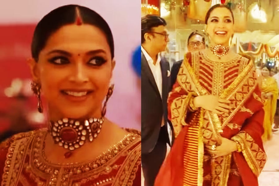 তবে নজর কেড়েছে হবু মায়ের সাজপোশাক। আম্বানিদের লাল গালিচায় দীপিকার মাতৃত্বের লাবণ্য যেন চুইঁয়ে পড়ছিল। জানা গিয়েছে, অভিনেত্রীর পরনে সেই লাল আনারকলির দাম নাকি ১ লক্ষ ৪৫ হাজার ৫০০ টাকা। গলায় পরনে চোকার নেকলেসের নেপথ্যেও রয়েছে ইতিহাসের ছোঁয়া। রঞ্জিৎ সিংয়ের সময়ে শিখ সাম্রাজ্যে ঠিক যে ধরণের বাজুবন্ধ ব্যবহার করা হত, সেই ডিজাইনেই তৈরি দীপিকার এই নেকলেস। যা কিনা পুরোটাই টাইমুর রুবি দিয়ে তৈরি। অনুষ্ঠানে গিয়ে প্রথমেই রজনীকান্ত এবং তাঁর স্ত্রী লতার সঙ্গে কথা বলতে দেখা যায় দীপিকাকে। পরে অমিতাভ বচ্চনের সঙ্গেও কিছুক্ষণ আড্ডা দেন। ক্যামেরায় ধরা পড়ে পারফেক্ট ‘পিকু মোমেন্ট’। খানিক অস্থির বোধ করলেও আম্বানি নিশি ঠেকে ইন্ডাস্ট্রির বন্ধু-সহকর্মীদের সঙ্গে তিনি বেশ মেতে উঠেছিলেন।