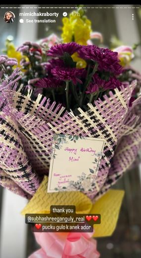 এযাবৎকাল মিমি চক্রবর্তীর ‘বোনুয়া’ বলতে নুসরত জাহানের (Nusrat Jahan) কথাই জানতেন সকলে। তবে এবছর মিমির জন্মদিনে নুসরতের তরফে সোশাল মিডিয়ায় কোনও পোস্ট দেখা যায়নি। এমনকী, বার্থডে পার্টিতে জিৎ, শ্রাবন্তী, প্রসেনজিৎ-সহ একাধিক তারকামুখকে দেখা গেলেও যশ-নুসরতের কাউকেই দেখা যায়নি! তবে মিমির ইনস্টা স্টোরিতে নজর কাড়ল শুভশ্রীর পাঠানো ফুলের তোড়ার ছবি। যা শেয়ার করে রাজ-ঘরণিকে ধন্যবাদ জানিয়ে তিনি লিখলেন, “পুচকুগুলোকে অনেক আদর।” রাজ-শুভশ্রীর দুই সন্তান যুবান, ইয়ালিনিকে ভালোবাসা জানিয়েছেন মিমি চক্রবর্তী।