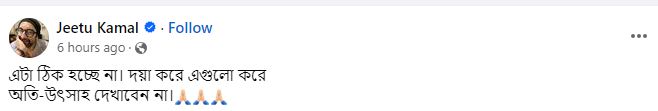 জীতু কমল লিখলেন, ”এটা ঠিক হচ্ছে না। দয়া করে এগুলো করে অতি-উৎসাহ দেখাবেন না।”