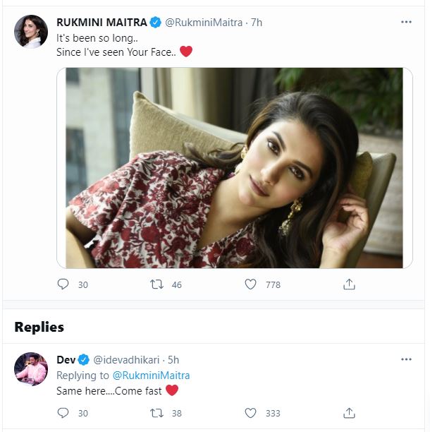 রুক্মিণীর এই পোস্টে কমেন্ট করেছেন প্রযোজক মহেন্দ্র সোনিও (Mahendra Soni)। রুক্মিণীকে ট্যাগ করে দেবের ছবি আপলোড করেছেন তিনি। ক্যাপশনে লিখেছেন “এই নাও।”