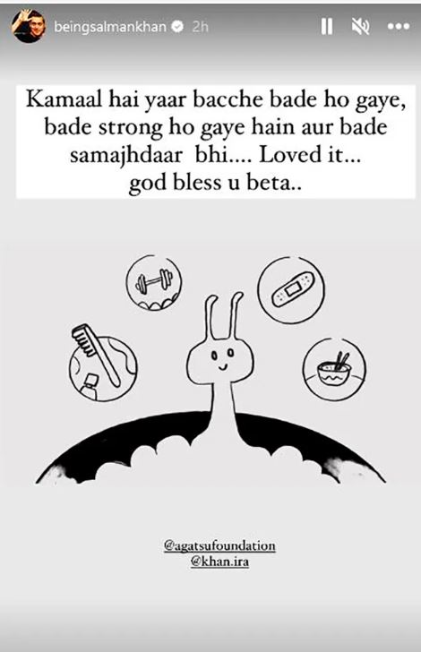 কাণ্ডটা হল, সোশাল মিডিয়ায় মেন্টাল হেলথ নিয়ে সচেতনতা ছড়ানোর জন্য বিশেষ দায়িত্ব কাঁধে নিয়েছেন ইরা। নানা সময়ই তাঁকে সোশাল মিডিয়ায় নানা ভিডিও পোস্ট করতে দেখা যায় তাঁকে। সেই ভিডিওই দেখেই সলমনের মন্তব্য, ”দারুণ, বাচ্চাটা বড় হয়ে গিয়েছে। অনেক শক্তিশালীও হয়ে গিয়েছে। বুদ্ধিমতীও হয়ে গিয়েছে। ভগবান তোমার ভাল করুক।”